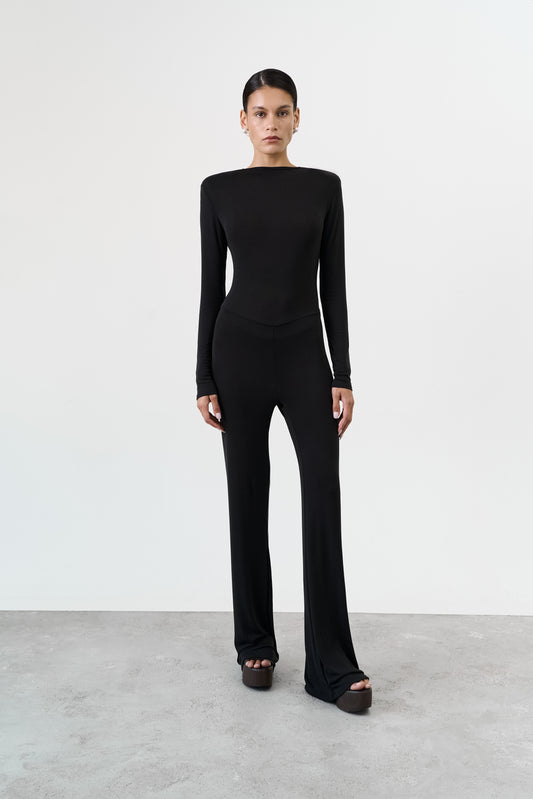 ExclusiveJumpsuit Flared Trousers and Pearl