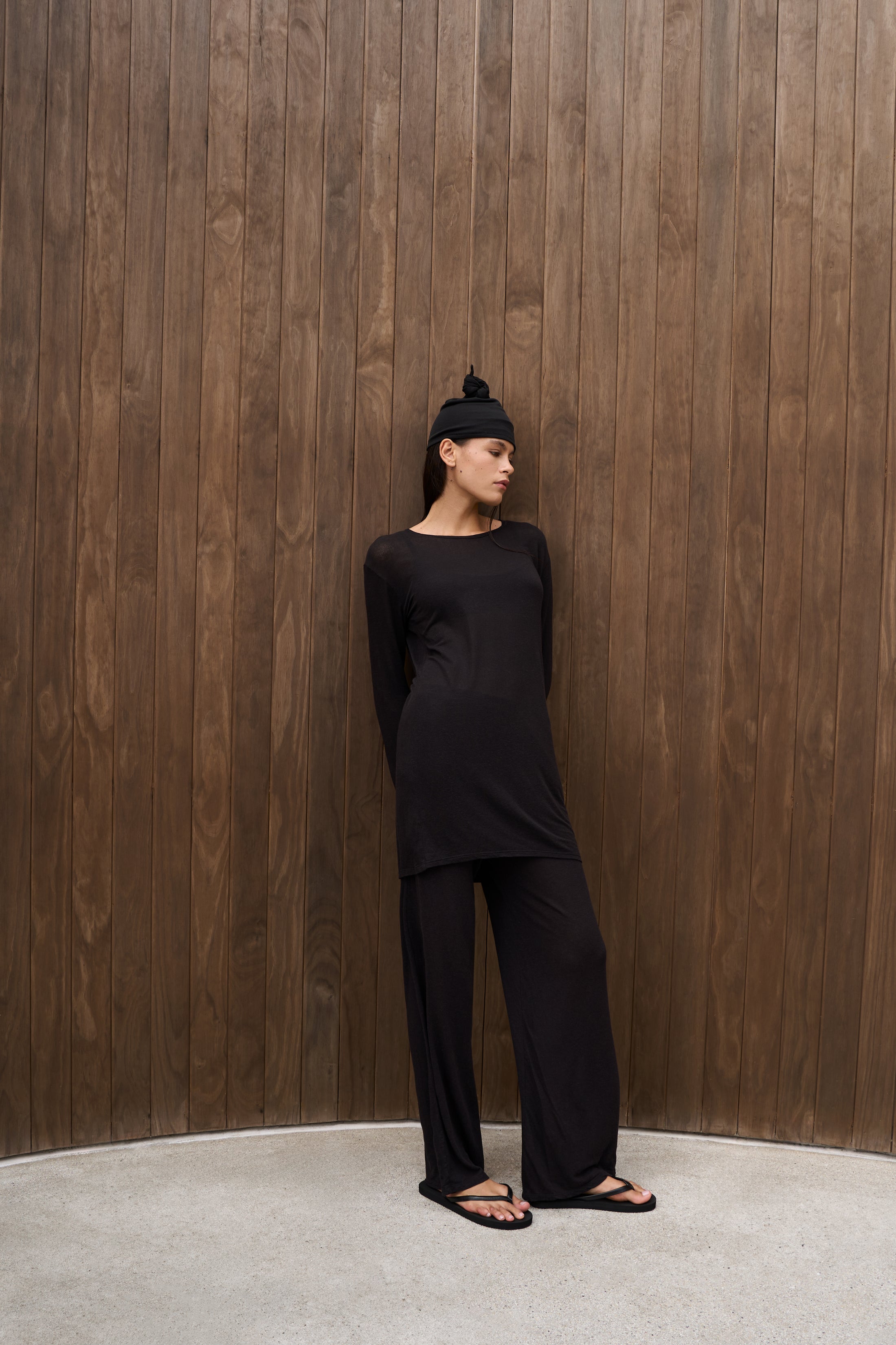 Soft jersey hat in a lyocell-viscose blend with a knotted detail on top. Lightweight and breathable, designed for a comfortable fit. Can be styled as a beanie or head wrap.