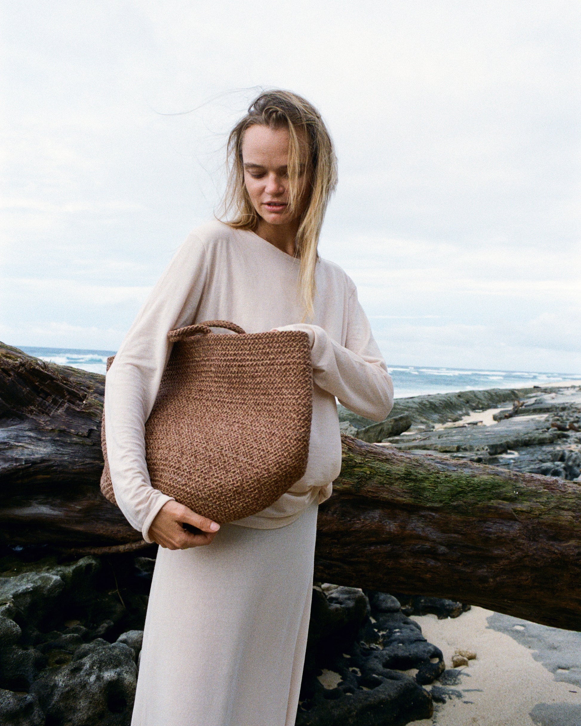 Long-sleeve top made from lightweight linen knit with Tencel. The semi-sheer fabric gently drapes over the body, highlighting natural lines and form. With its relaxed silhouette and fluid sleeves, it feels effortlessly airy and soft — perfect as a base layer or a subtle statement on its own.