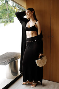 Lightweight knitted top with thin straps and inner elastic for a secure yet gentle fit. Crafted from the premium linen, Tencel, and spandex blend — breathable, soft, and perfect for hot days. Pairs effortlessly with UMI skirts, trousers, or shorts.